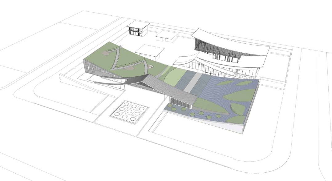 示范區的主體建筑,化用了中國傳統屋檐元素,“人”字形的大坡屋頂前后交錯,仿若起伏的山巒。